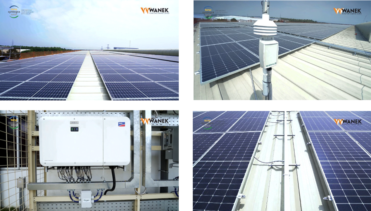 PROINSO, in partnership with Tona Syntegra Solar JSC (TSS), has carried out a beautiful project located in the Binh Duong Province named Wanek. The 6,359 kWp system, owned by the world’s leading furniture firm WANEK FURNITURE COMPANY, is expected to produce an average of 8902 MWh within the first year and will offset around 5036 tCO2 per year. This project was built during the Covid 19 pandemic (from September 2020 to February 2021) with strict requirements from the owner. The Wanek project is compliant with FM global standards and is one of Vietnam’s most sophisticated industrial RST systems empowered by rapid shutdown, zero Export Control and hybrid controller.