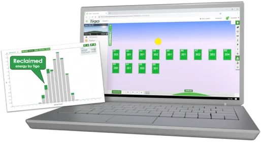 Tigo’s SMART Website and App are online monitoring tools that manages utility, commercial, and residential PV systems. System analytics track production, send alerts, and proactively suggest maintenance actions to keep systems operating at maximum efficiency. For increased safety, Tigo’s SMART Website can remotely power-off each panel individually, eliminating high voltage for maintenance or safety purposes. Customers can also see the Reclaimed energy recovered by Tigo’s TS4 optimizers. Reclaimed is the number of extra kilowatt hours that a PV system with TS4 has harvested. The new feature is displayed with the Total Energy on system owners’ online monitoring portals with ROI by year, month, day, hour, or minute. Watch proof of your solar ROI or view a live PV system on Tigo’s SMART Website.